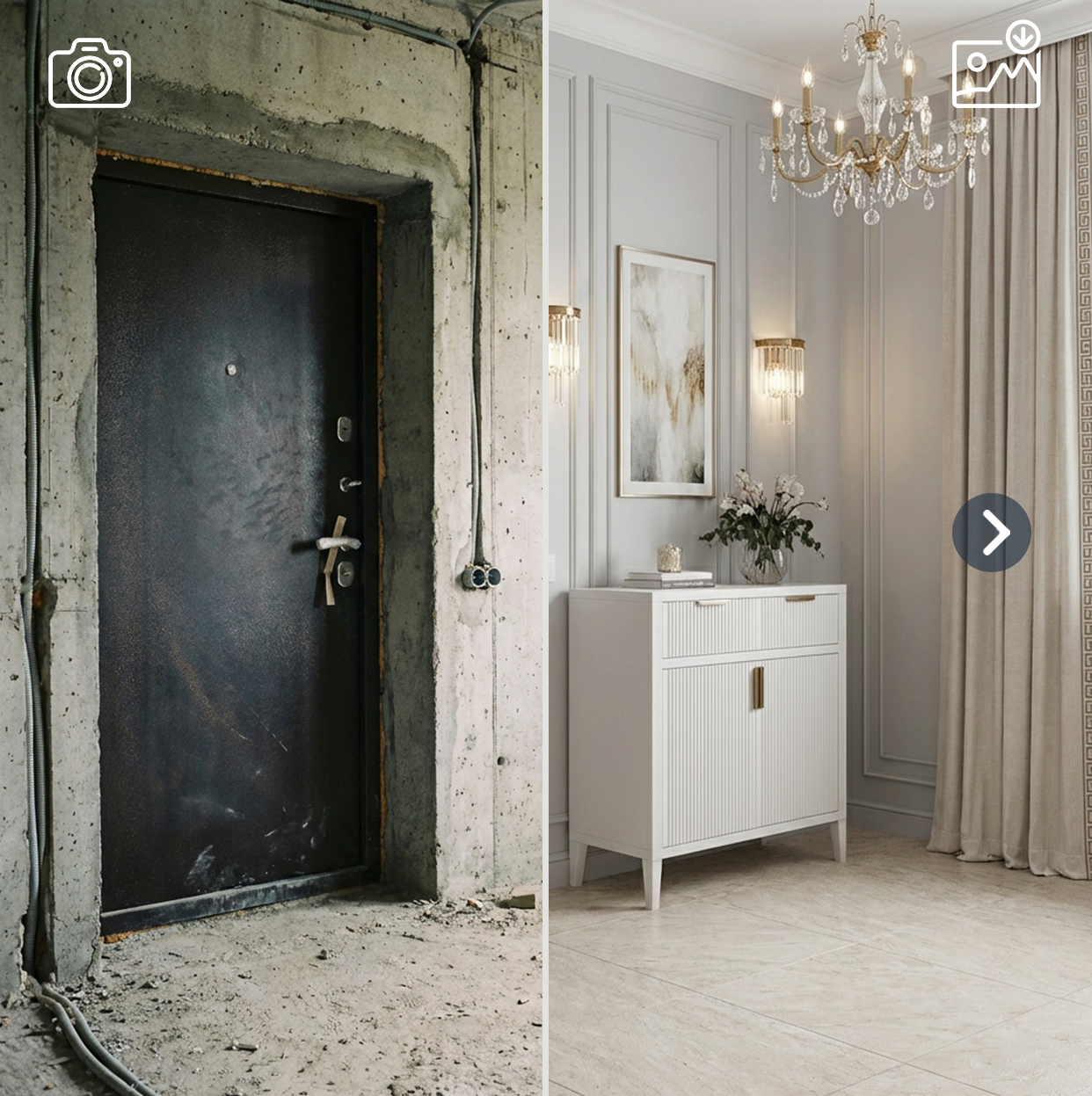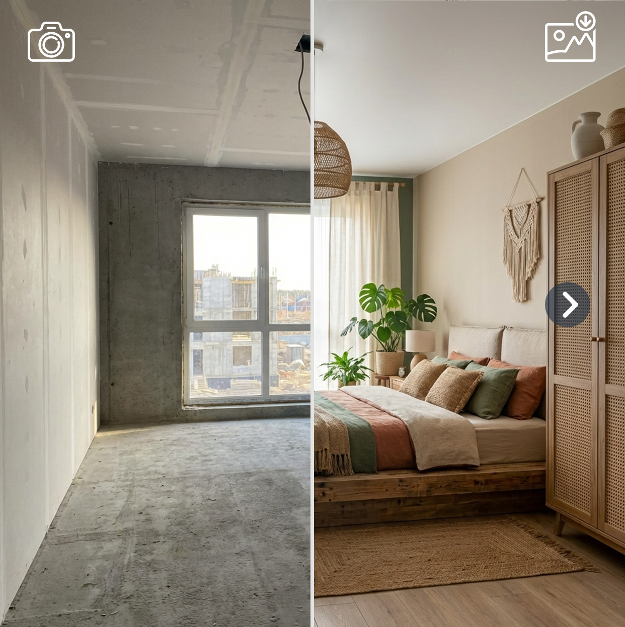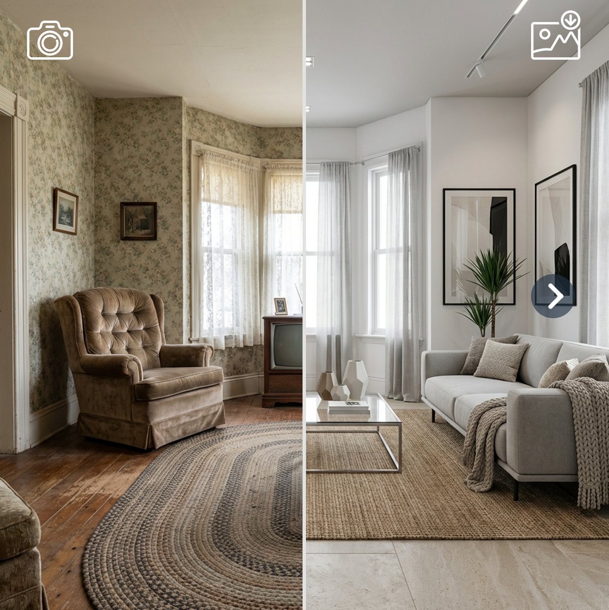Upload your room photo, answer a few simple questions, and get 2 redesigned interiors with practical design recommendations.